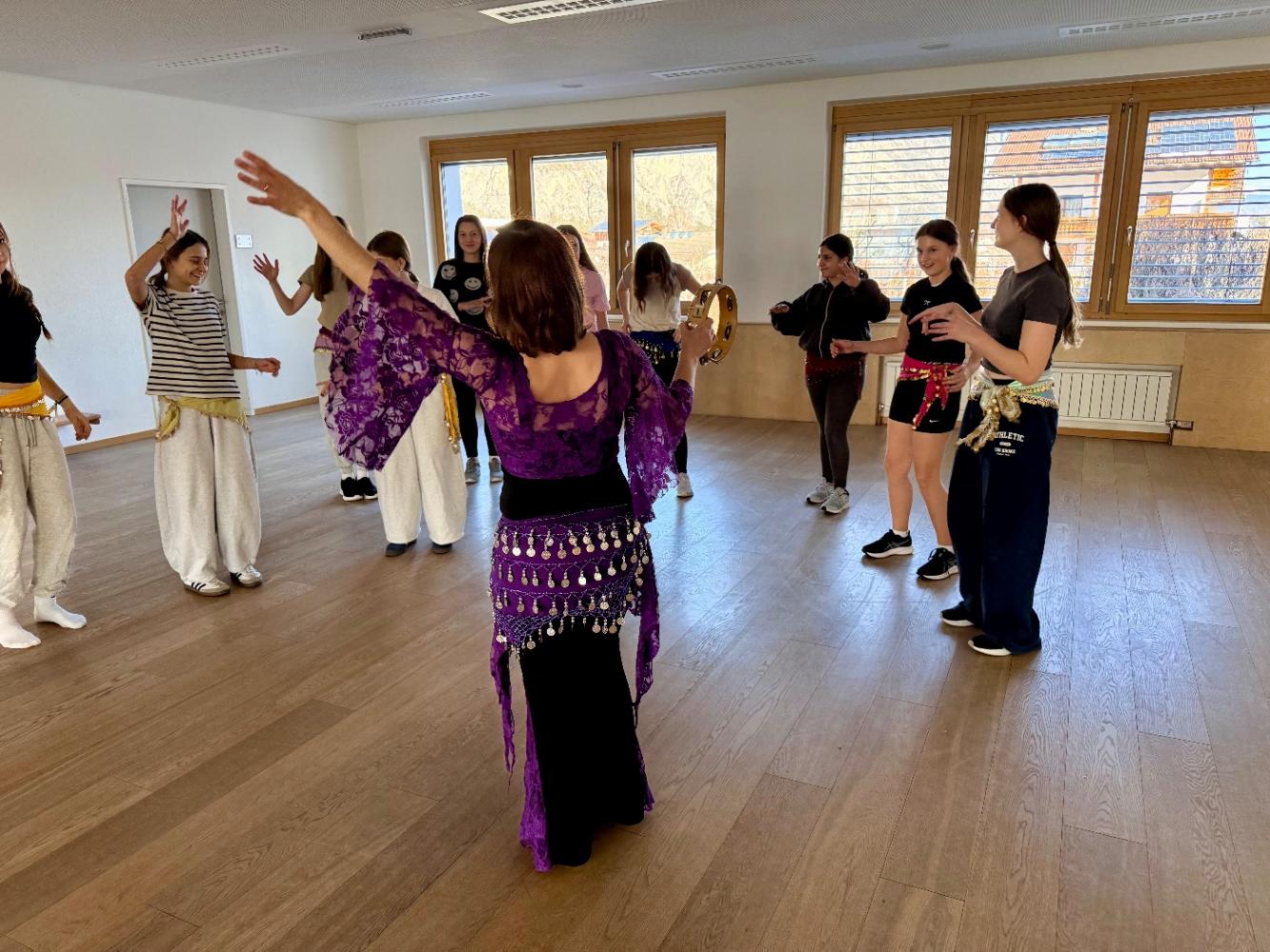 Der Workshop, der im Rahmen des Wahlpflichtfachs Dance Academy stattfand und von Frau Aster geleitet wurde, bot den Schülerinnen eine spannende tänzerische Reise in die Kultur des Orients. Unter der fachkundigen Anleitung lernten die Tänzerinnen typische Bewegungen, fließende Schrittfolgen und ausdrucksstarke Choreografien kennen.